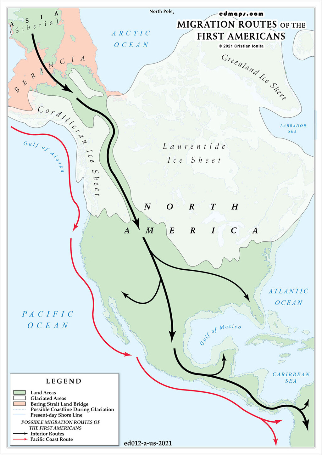 Some researchers propose additional routes, including possible Atlantic crossings or earlier arrival dates, though these remain controversial and require further archaeological validation.